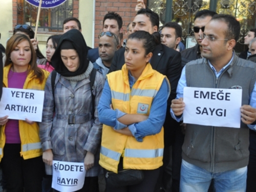 Eskişehir'de 112 Acil Servis personelinin bir hastaya müdahale etmek isterken hasta yakınları tarafından darp edilmesi, çalışma arkadaşları tarafından protesto edildi.