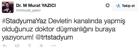 TRT'de Ersin Düzen tarafından sunulan Stadyum proğramında girilen alt yazı ve onrasında gösterilen VTR, adeta 'hekime şiddete davetiye' niteliği taşıyordu.