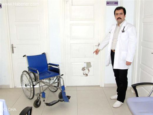 Duruma öfkelenen 3 genç kendilerine tepki gösteren doktoru dövmeye kalkıştı. Doktor Emlik, kendisine vurmak için saldıran gençlerden korunmak için tekerlekli sandalyeyi kendisine siper yaparak odasına girmeye çalıştı. Bu sırada savrulan tekmelerden korunmaya çalışan doktor, girmeyi başardığı odanın kapısını kilitleyerek polislerden yardım istedi. Öfkesi geçmeyen 3 genç ise tekerlekli sandalye ile doktorun bulunduğu odanın kapısını tekmeledi. Gençlerin tekme attığı kapı kırıldı, tekerlekli sandalye ise hasar gördü. Vatandaşların sakinleştirerek engellediği 3 genç, bu sırada ihbar üzerine merkeze gelen polisler tarafından gözaltına alındı.
