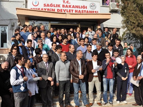 Mardin'in Nusaybin ilçesi Devlet Hastanesi'nde görevli Psikiyatri Uzmanı Dr. Eren Abatan'ın muayene ettiği hastanın saldırısında sol el parmaklarının kırılması meslektaşları tarafından protesto edildi