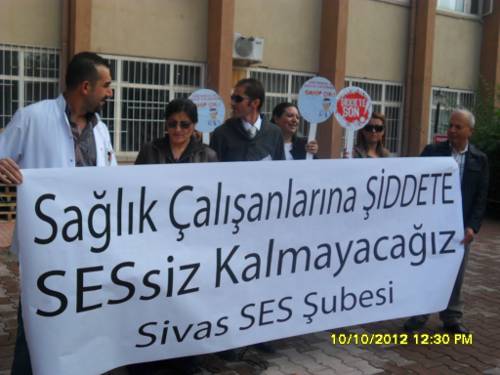 Dün öğleden sonra Hastanemizde Sendikamız üyesi bir arkadaşımıza üzerine yürüyen hasta yakınları, servis çalışanları tarafından engellenmeseydi fiziki darp meydana gelecek ve yaralanma olacaktı. Arkadaşımızın Hasta yakınları tarafından yüksek ses, hakaret, tehdit ve aşağılayıcı davranışlarla saldırıya uğraması sonucu; adeta salgın hastalık halini alan sağlık çalışanına şiddete artık dur demek için burada toplanmış bulunmaktayız.
