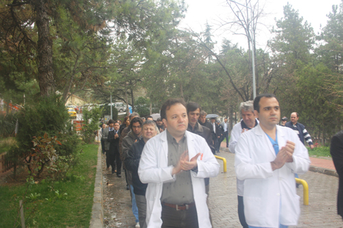 Bilecik Tabip Odası’nın çağrısıyla hekimler ve sağlık çalışanları Dr. Ali Kaya’ya yönelik şiddeti 2 saatlik iş bırakma eylemi ile protesto etti.
