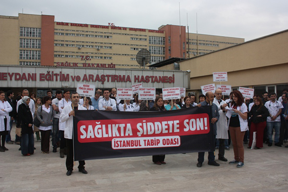 19 Mart 2013 günü sabah 06.00’da hasta yakınları Okmeydanı EAH Acil Servisi’nde görevli bir asistan hekimle beraberindeki sağlık çalışanlarını darp etti. Hekimler ve sağlık çalışanları artık gündelik hayatın parçası haline gelen bu ve benzeri şiddet olaylarına karşı tepkilerini göstermek, şiddeti doğuran sebeplerin ortadan kaldırılmasını talep etmek üzere 20 Mart 2013 günü 12.15’de başhekimlik önünde bir basın açıklaması gerçekleştirdiler.