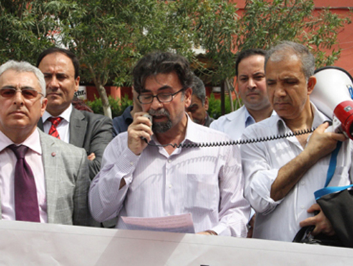 Mersin Sağlık Hakkı Meclisi üyeleri, sağlık emekçilerine yönelik şiddeti Mersin Devlet Hastanesi Göz Polikliniği önünde protesto etti.